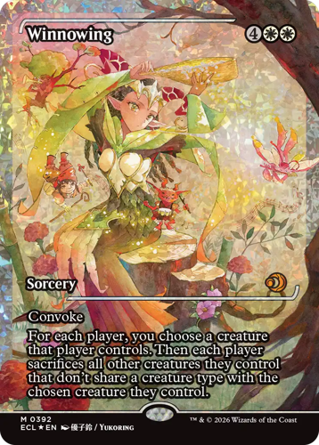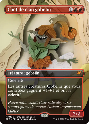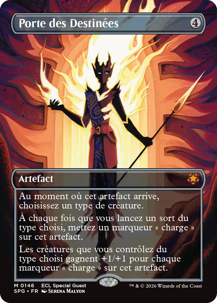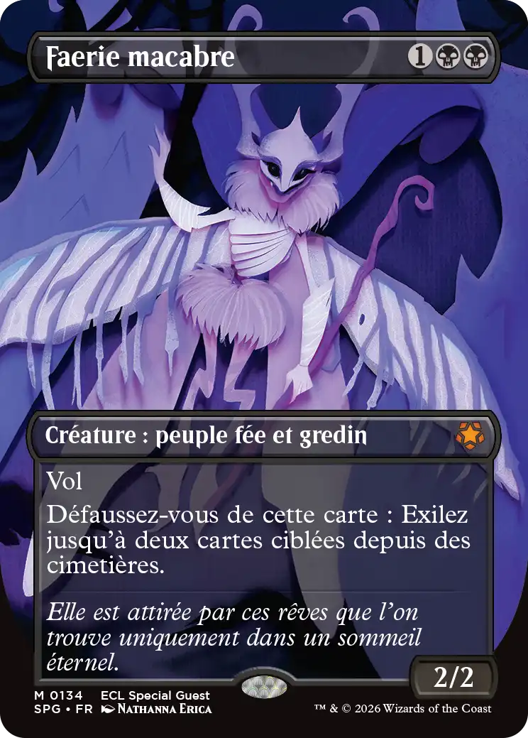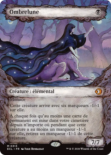 Des artistes emblématiques des blocs Lorwyn et Sombrelande font leur grand retour avec des cartes sans bordure de cette nouvelle extension. Chaque carte arbore une illustration d’un·e artiste qui a travaillé sur une des extensions originelles des blocs Lorwyn et Sombrelande. Ces cartes sont disponibles en versions standard et Premium dans les boosters de jeu et les boosters collector.