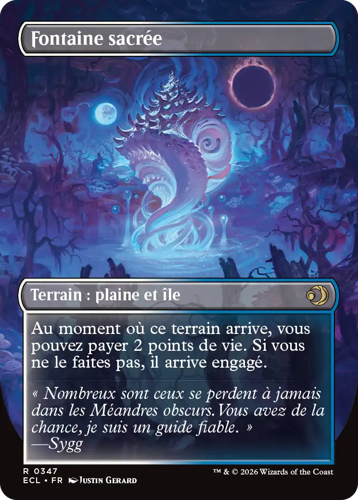 Prenez la pleine mesure du cycle jour nuit avec les terrains de base pleine illustration. Lorwyn et Sombrelande disposent chacun de leur propre ensemble de cartes de terrains de base pleine illustration, ce qui permet de personnaliser votre deck à l’envie. Il est également possible d’inclure des cartes des deux cycles pour concevoir le deck ultime de l'éclipse.