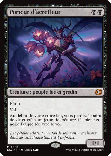 Cette version de Porteur d’âcrefleur n'apparaît que dans les boosters collector de Lorwyn Éclipsé. Des versions sérialisées de Porteur d’âcrefleur peuvent apparaître dans les boosters collector de n'importe quelle langue, mais la carte sera toujours en anglais. Les cartes sérialisées sont mécaniquement identiques à leurs homologues non sérialisées.